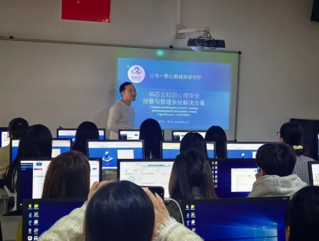 2025年10月22日,知芯云科技、知芯云博士工作站的心理健康专家贾云丞博士在重庆大渡口区教育局2025-2026学年心理健康教研活动中为本区的教职人员进行了校园心理健康现状及《知芯云校园心理安全预警与管理系统》平台应用操作的培训会,培训的主要内容涉及:校园心理危机现状、存在的问题、危机干预的方法、解决问题的手段等,让参培人员充分认识到校园心理危机干预的重要性,对《知芯云校园心理安全预警与管理系统》平台在心理筛查、干预、解决问题等方面的能力进行了讲解及实际操作。